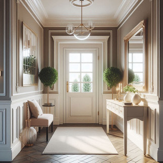 When designing your entryway, consider incorporating a mirror to not only reflect light and create a sense of spaciousness but also to add a touch of elegance. However, be mindful of the mirror's placement; it should not directly face the front door to prevent the energy from being pushed back out of the space.